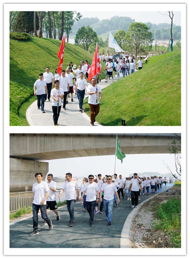 活動(dòng)開(kāi)始,首先,總經(jīng)理王智勇代表公司致詞,做了熱情洋溢的動(dòng)員,接著,參加活動(dòng)的各位領(lǐng)導(dǎo)為公司本部及四個(gè)子公司共五支代表隊(duì)進(jìn)行了集中授旗,最后,隨著公司執(zhí)行董事張勇的隆重宣布和發(fā)令槍聲的響起,健步走活動(dòng)正式開(kāi)始。大家從風(fēng)景如畫(huà)的三河六岸公園音樂(lè)噴泉廣場(chǎng)出發(fā),沿著步道,一直走到今年新建成的南水北調(diào)源頭公園氣膜館。大家一個(gè)個(gè)精神飽滿(mǎn),熱情高漲,意氣風(fēng)發(fā),邊走邊交流,細(xì)數(shù)著公司過(guò)去及現(xiàn)在發(fā)展歷程中的點(diǎn)點(diǎn)滴滴,同時(shí),欣賞著公園美景,感受著健步走帶來(lái)的歡樂(lè),大家一路走,一路笑,各種喜悅寫(xiě)滿(mǎn)了笑臉。