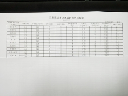 2016年7月江都區城市供水管網水水質公示