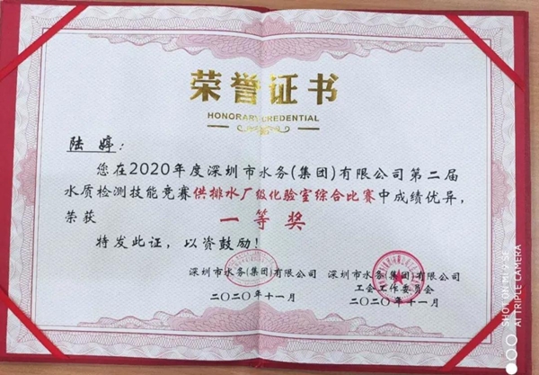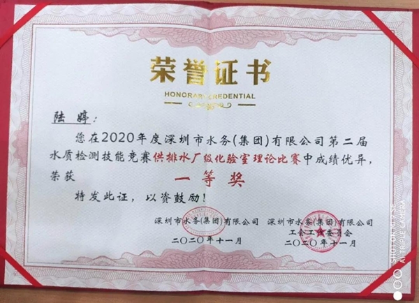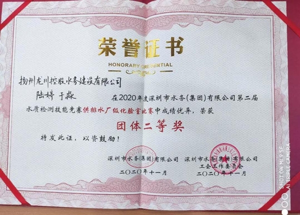 揚州龍川水務公司在深圳水務集團第二屆水質(zhì)檢測技能競賽中斬獲嘉獎