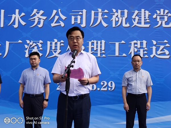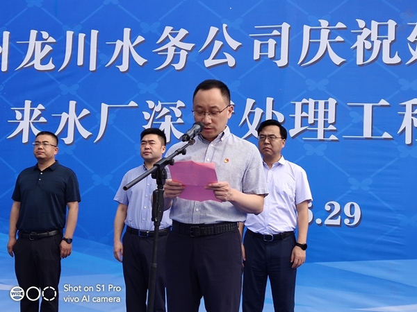 副區長楊曉榮同志代表區委、區政府作重要講話,首先對龍川水務公司第二、三水廠深度處理工程的竣工投運表示熱烈的祝賀,并強調指出,水是經濟社會發展的重要基礎和關鍵命脈,龍川控股集團委托深圳環水投資集團運營龍川水務后,水務公司能緊緊圍繞民生所需、民眾所期、民心所盼,大力實施放心水、優質水工程,積極推進供水支管網改造和污水管網、農村污水處理設施建設,為全區水生態文明建設作出了突出的貢獻,龍川水務公司整體的質態也有了較大的飛躍。希望以今天的通水儀式為新的起點,不忘初心,牢記使命,乘風破浪,穩健前行,進一步推進供水事業發展,為江都的社會穩定、經濟發展做出更大的貢獻。