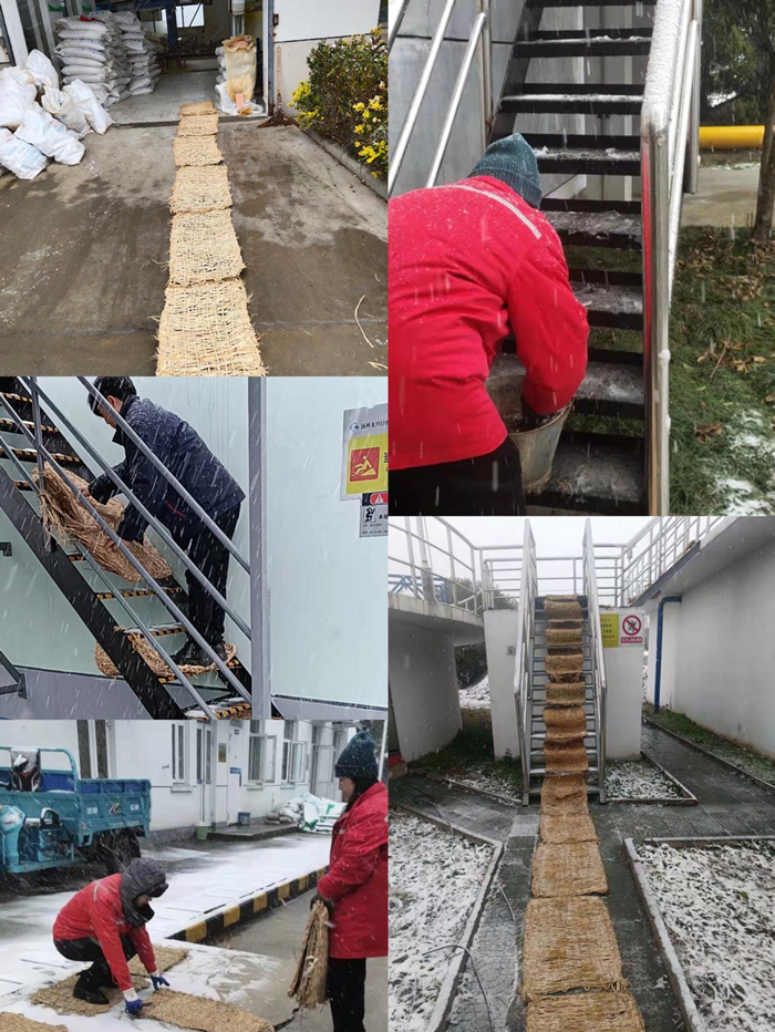 為提前做好雨雪冰凍天氣防范應(yīng)對(duì)工作,避免雨雪冰凍天氣對(duì)污水廠安全穩(wěn)定生產(chǎn)運(yùn)行帶來(lái)的不利影響和損失,我公司嚴(yán)格按照上級(jí)各有關(guān)指示精神,積極落實(shí)相關(guān)應(yīng)對(duì)工作。各下屬污水廠高度重視,積極應(yīng)對(duì)并迅速啟動(dòng)雨雪冰凍天氣應(yīng)急預(yù)案相關(guān)工作,各污水廠負(fù)責(zé)人積極宣傳相關(guān)文件精神,迅速組織全員加入應(yīng)急隊(duì)伍中,提高全員防凍保溫及安全作業(yè)意識(shí),強(qiáng)調(diào)全體運(yùn)行工在工作中要加強(qiáng)巡視,發(fā)現(xiàn)問(wèn)題及時(shí)報(bào)告廠區(qū)負(fù)責(zé)人,最大程度的減少冰凍雨雪天氣給廠區(qū)生產(chǎn)設(shè)備、運(yùn)行及員工身體健康等方面帶來(lái)的不利影響。各廠負(fù)責(zé)人帶頭加入積雪清掃隊(duì)伍中,并在廠區(qū)重要工作部位鋪設(shè)草墊,做好防滑工作,各廠負(fù)責(zé)人提醒廠區(qū)值班人員在做好日常生產(chǎn)工作的同時(shí),盡量減少登池作業(yè)頻次,全面保障人身安全,確保各廠區(qū)安全生產(chǎn)運(yùn)作。