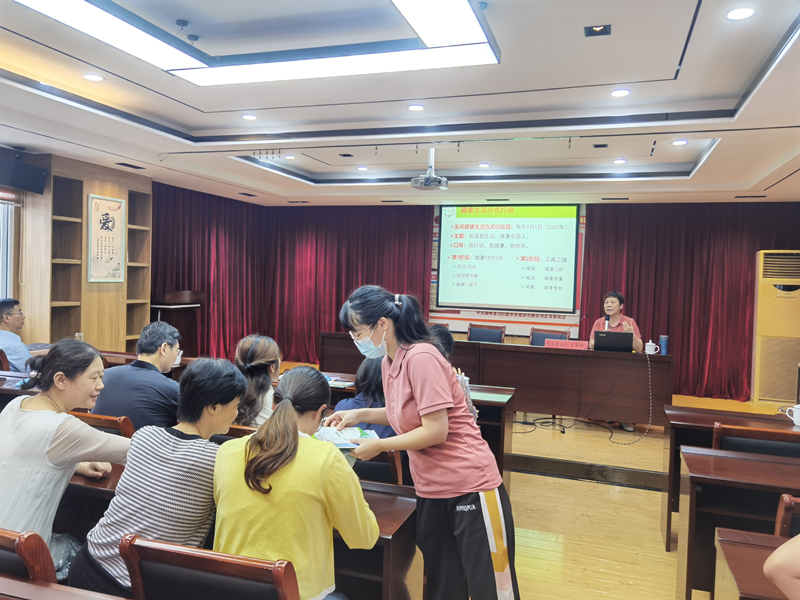 蘇北人民醫(yī)院主任護師、揚州“義工教授”、國家三級健康管理師、國家級職業(yè)技能鑒定考評員吉承玲教授,應邀作現(xiàn)場開講,在活動現(xiàn)場,吉教授一方面緊緊圍繞健康生活方式、合理膳食展開輕松座談;另一方面用較為活潑生動的語言,通俗易懂地為我們普及了健康基礎知識;同時還深入淺出地用實際案例為我們平時不健康的生活習慣做提醒,現(xiàn)場還不時有相關互動交流環(huán)節(jié),整個氛圍輕松愉快,讓人受益良多。此外,其助理工作人員還為我們在座的各位分發(fā)了相關健康宣傳手冊,實用飲食計量器具等,以便讓大家更加了解我們人體所需的膳食營養(yǎng)以及如何做好更加合理科學的日常飲食搭配。