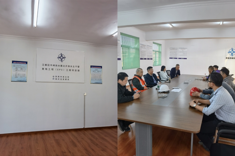 10月19日下午,水務公司總經理王智勇帶隊、財務總監王萍、龍泉公司經理韓春暉及龍泉公司相關人員陪同,到中閘供水圈北片供水主干道復線工程九標段頂管施工現場進行專題檢查指導。