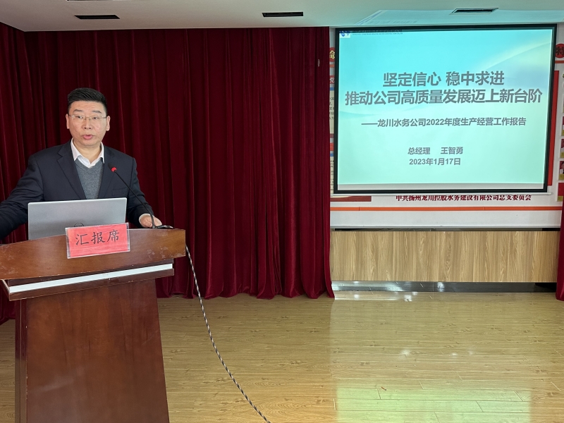在本次大會匯報(bào)交流環(huán)節(jié),分別聽取了計(jì)劃財(cái)務(wù)部、運(yùn)營技術(shù)部、黨群工作部、自來水公司、惠民區(qū)域供水公司、龍泉建設(shè)工程公司、龍川污水處理公司等七個部門單位2022年工作總結(jié)報(bào)告。各部門、子公司負(fù)責(zé)人分別圍繞2022年全年生產(chǎn)經(jīng)營指標(biāo)、重點(diǎn)工作完成情況、存在的主要問題、解決對策以及2023年工作計(jì)劃作了交流匯報(bào)。